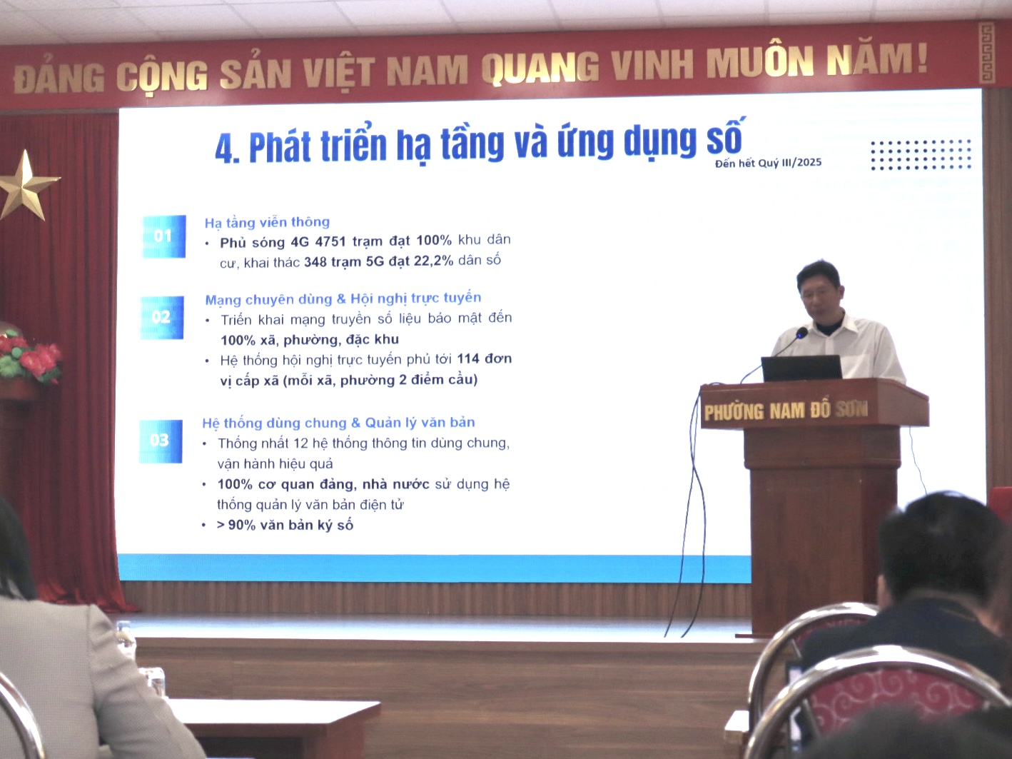 Chiều 27 tháng 11 năm 2025, Ủy ban nhân dân phường Nam Đồ Sơn tổ chức Hội nghị tập huấn, bồi dưỡng kiến thức về công tác chuyển đổi số trên địa bàn, thực hiện theo Kế hoạch số 71/KH-UBND ngày 21 tháng 10 năm 2025.