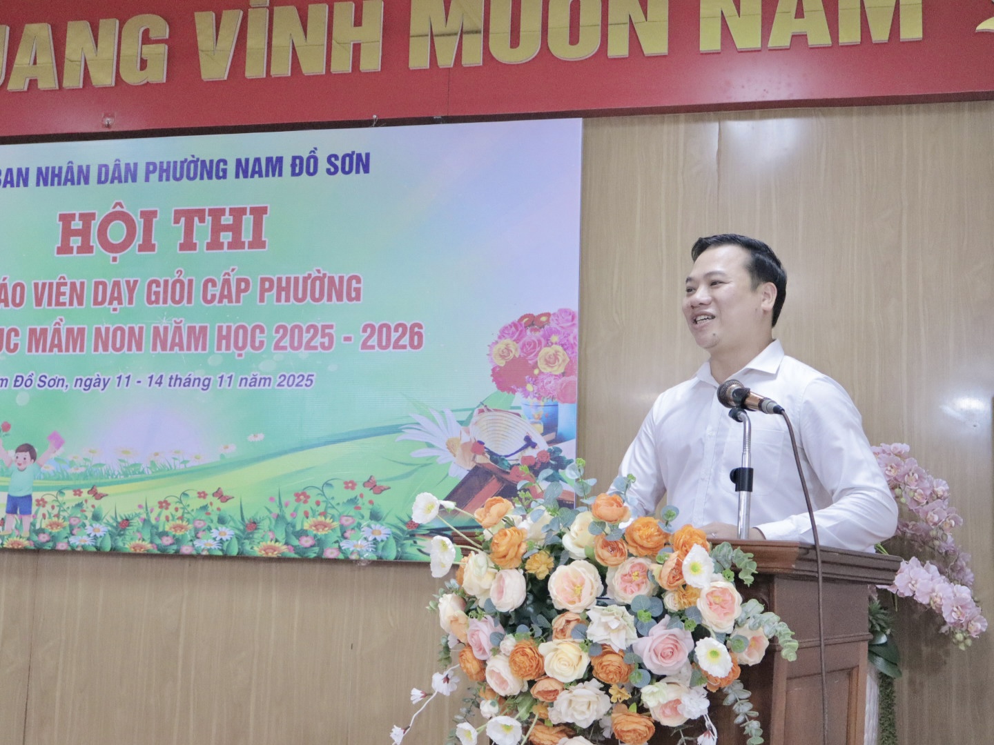 Phát biểu tại Hội nghị, đồng chí Nguyễn Đức Anh - Phó Chủ tịch UBND phường biểu dương sự nỗ lực của Ban Tổ chức, Ban Giám khảo và các giáo viên tham gia Hội thi; đồng thời nhấn mạnh: “Hội thi không chỉ đánh giá năng lực chuyên môn mà còn tạo cơ hội để mỗi giáo viên tiếp tục rèn luyện, đổi mới sáng tạo, đáp ứng yêu cầu ngày càng cao của ngành học mầm non. UBND phường mong muốn các cô giáo tiếp tục lan tỏa những kinh nghiệm, mô hình hay vào thực tiễn giảng dạy, góp phần xây dựng môi trường giáo dục an toàn, thân thiện và chất lượng.”