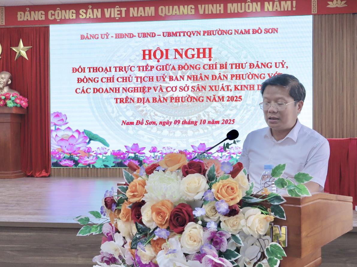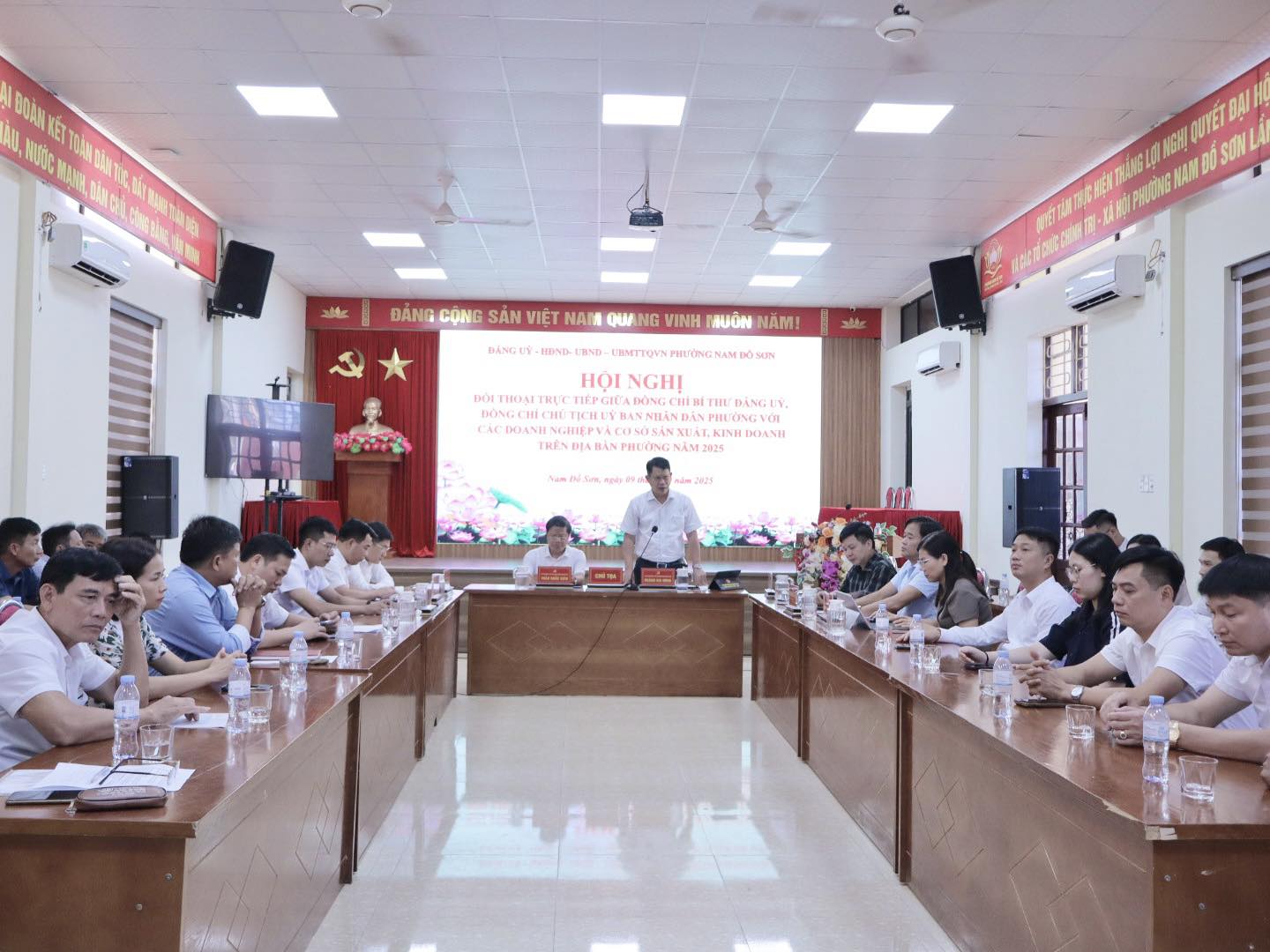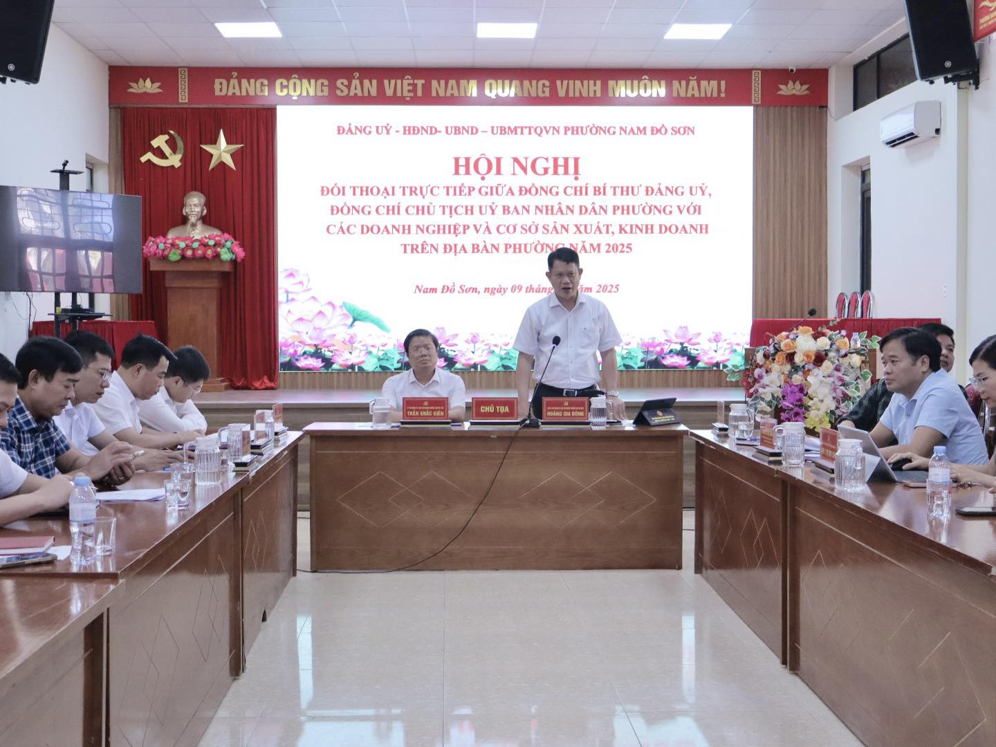 PHƯỜNG NAM ĐỒ SƠN TỔ CHỨC HỘI NGHỊ ĐỐI THOẠI GIỮA LÃNH ĐẠO ĐẢNG UỶ, UỶ BAN NHÂN DÂN VỚI CÁC DOANH NGHIỆP, CƠ SỞ SẢN XUẤT KINH DOANH NĂM 2025
