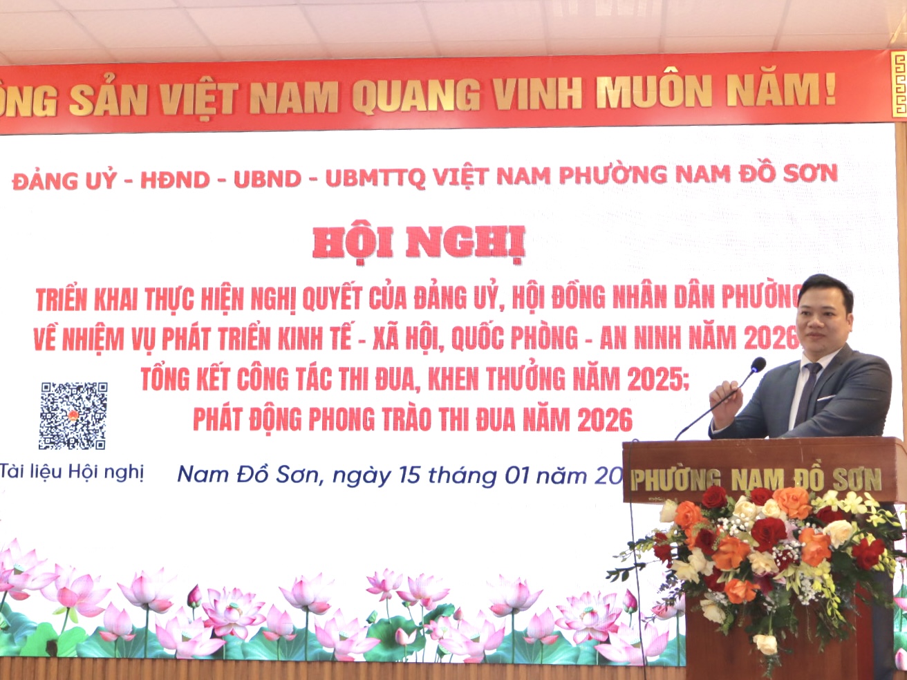Sáng ngày 15/01/2026, Ủy ban nhân dân phường Nam Đồ Sơn tổ chức Hội nghị triển khai thực hiện Nghị quyết của Đảng ủy, Hội đồng nhân dân phường về nhiệm vụ phát triển kinh tế – xã hội, quốc phòng – an ninh năm 2026; tổng kết công tác thi đua, khen thưởng năm 2025 và phát động phong trào thi đua năm 2026.
