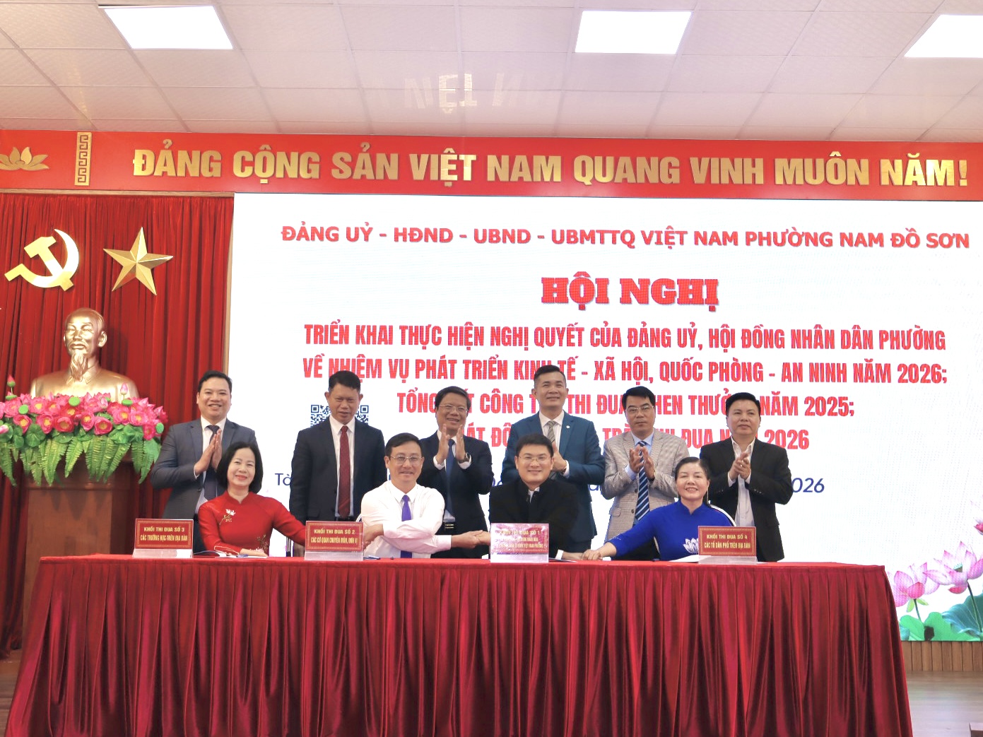 PHƯỜNG NAM ĐỒ SƠN TỔ CHỨC HỘI NGHỊ TRIỂN KHAI THỰC HIỆN NGHỊ QUYẾT CỦA ĐẢNG ỦY, HỘI ĐỒNG NHÂN DÂN PHƯỜNG VỀ NHIỆM VỤ PHÁT TRIỂN KINH TẾ – XÃ HỘI, QUỐC PHÒNG – AN NINH NĂM 2026; TỔNG KẾT CÔNG TÁC THI ĐUA, KHEN THƯỞNG NĂM 2025 VÀ PHÁT ĐỘNG PHONG TRÀO THI ĐUA NĂM 2026